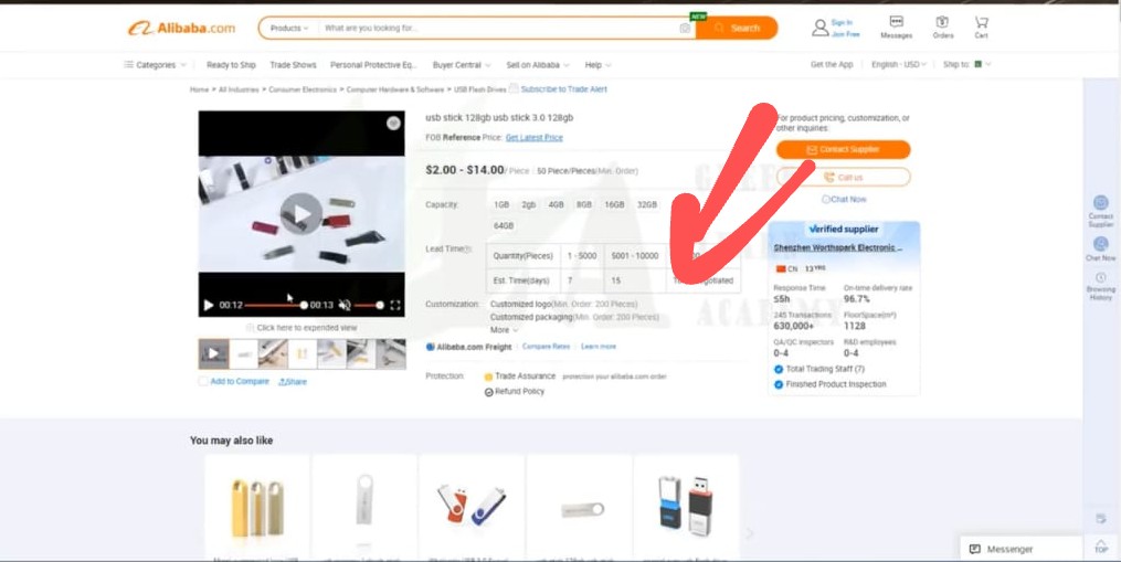 So I will pick something from here. Okay, I will block this here and write “USB.” Now, see, I want to buy this USB, but how do I buy it? For my business, to sell further. Now I am buying it because I have to sell it further. It said that you will have to order 50 of these. The minimum order is 50. Now, will I take 50 for my personal use? No, obviously, if I am taking 50, then I am a business, and this person is also a business. So this is a B2B website, which is Alibaba.