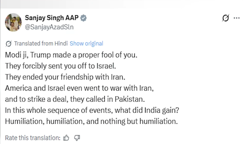 The opposition’s narrative suggests that by abandoning its traditional neutrality and “friendship” with Iran in favour of a strict pro-Israel alignment, India has been relegated to the periphery while its regional rival, Pakistan, has been elevated to a central mediating role.